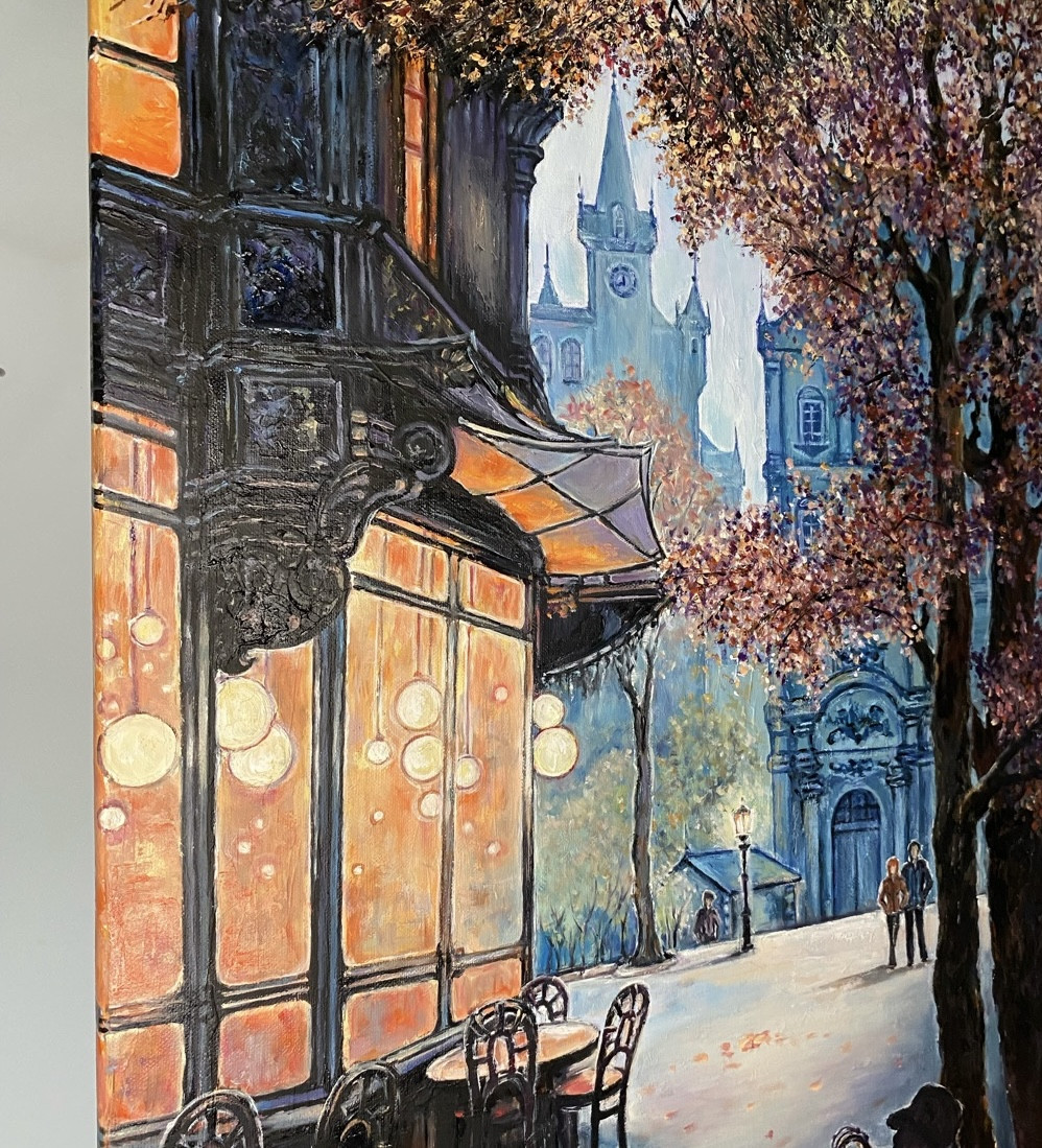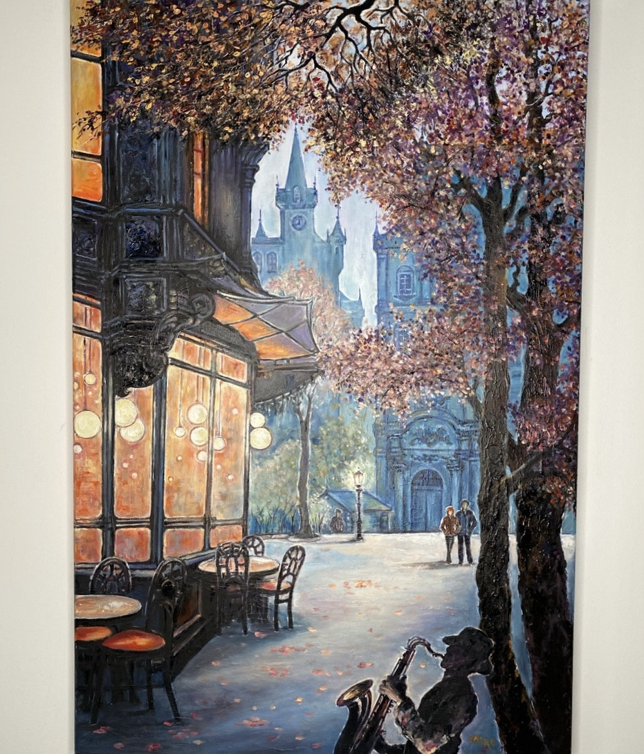 Oryginalny obraz “Jesienny jazz. Saksofonista i wieczorne miasto.” namalowany ręcznie farbami olejnymi na bawełniano-lnianym płótnie o wymiarach 60x40 cm. Saksofon to coś więcej niż tylko instrument muzyczny. To przedłużenie twojej duszy, zdolne wyrazić twoje najgłębsze uczucia. Złota jesień, miasto wieczorem, przytulna restauracja i muzyka jazzowa - moim zdaniem to połączenie idealne, które świetnie wpisuje się w teraźniejszość i jest tym, za czym tak bardzo tęsknię nasza dusza. Dialog z muzyką, jesienna fabuła urzekają nastrojem, grą światła i cienia - oto mój nowy obraz.