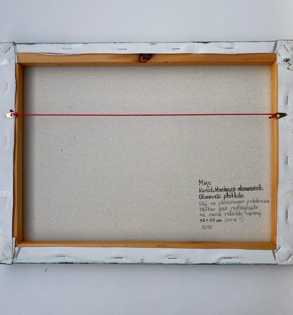 Obraz jest oryginalny. To jedyne w swoim rodzaju dzieło sztuki. Podpis autora znajduje się na awersie i rewersie.