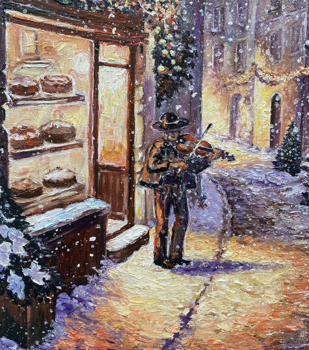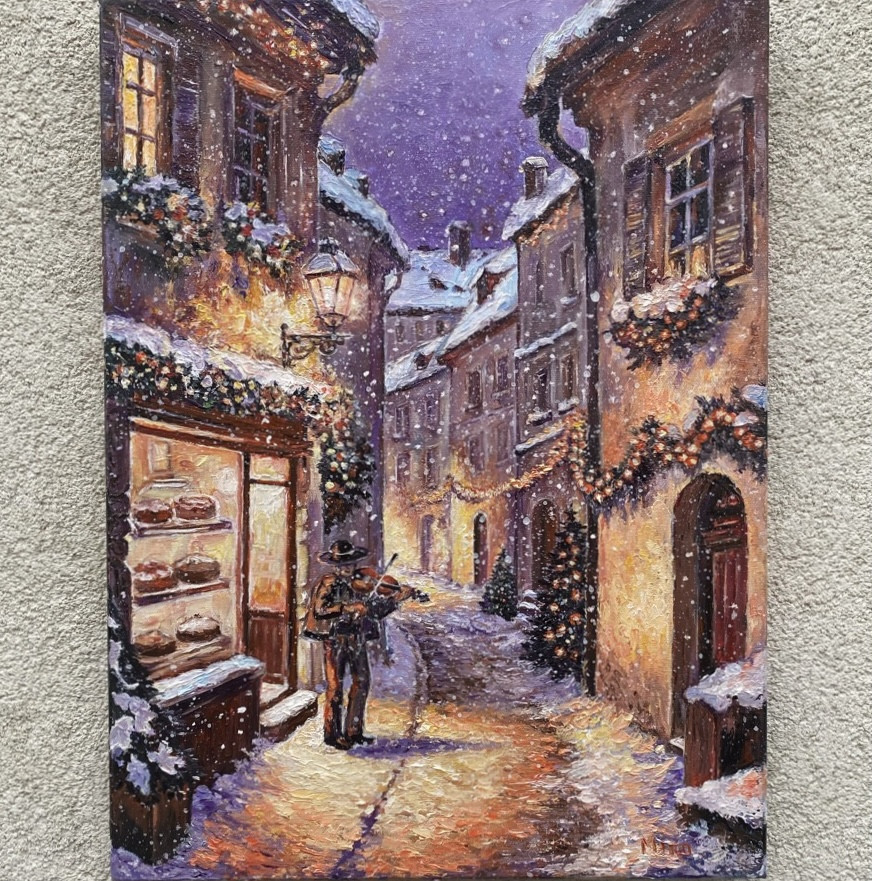 ”Magia i melodia Świat “ to szczególny stan umysłu, kiedy świat wokół nas zamienia się w bajkę, a znajome dźwięki stają się częścią majestatycznej symfonii radości. Zimowy wieczór, śnieg, piękne uliczki miasteczka ozdobione girlandami, gościnnie otwarte drzwi piekarni, góral grający na skrzypcach wesołe kolędy, a świeże, mroźne powietrze nagrzewa się od zapachu chleba i świątecznej melodii- to jest mòj nowy obraz. Tak więc magia i melodia Świąt jest język miłości i nadziei, który przypomina nam: dopóki potrafimy stworzyć okazje do świętowania dla siebie nawzajem, cuda będzie się zdarzać.