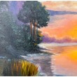Prezentowany olejny obraz zachodu słońca nad rzeką w lecie, rozmiar 30*40 cm, ręcznie malowany. Wieczorny krajobraz namalowany ekspresyjnie w bogatej, nasyconej kolorystyce. Doda każdemu wnętrzu niepowtarzalnej atmosfery. Serdecznie polecam.