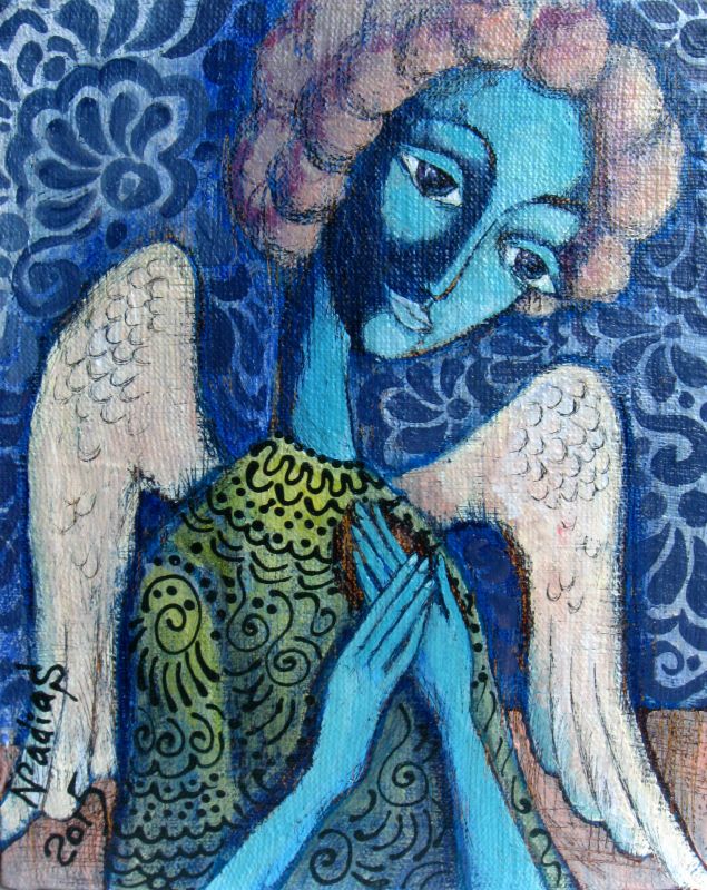 "Anioł w pokoju" 2015. 32 x 39,5 cm. Akryl, płótno. Technika mieszana.