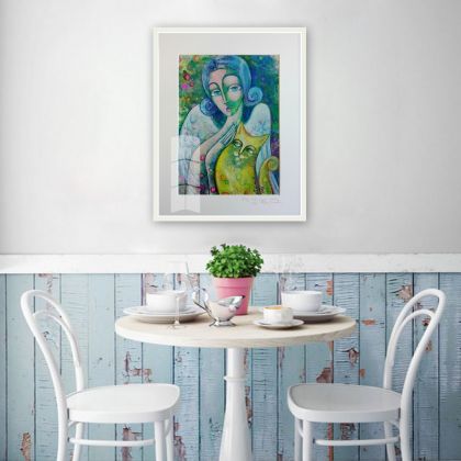 Wymiary - 20 x 30 cm. Praca pięknie oprawiona w passepartout 30 x 40 cm. Całość zabezpieczona pleksi i białą drewnianą ramą. Z powodów wysyłkowych wybrałam pleksi a nie szkło.