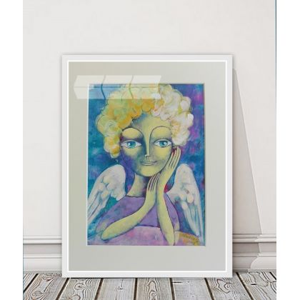 Wymiary - 20 x 30 cm. Praca pięknie oprawiona w passepartout 30 x 40 cm. całość zabezpieczona pleksi i białą drewnianą ramą. Z powodów wysyłkowych wybrałam pleksi a nie szkło.