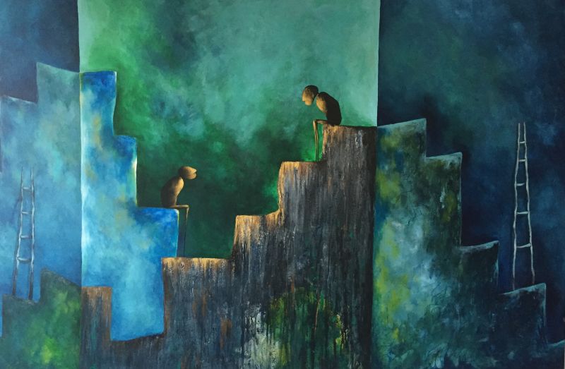 Akryl na płótnie. Technika własna. Wymiary 180x140cm. Obraz nie wymaga obramowania. Boki są kontynuacją obrazu. Zawerniksowany. Sygnowany.