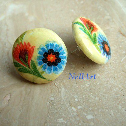 Akrylowe sztyfty ozdobione ludowym motywem wykonane w technice decoupage.