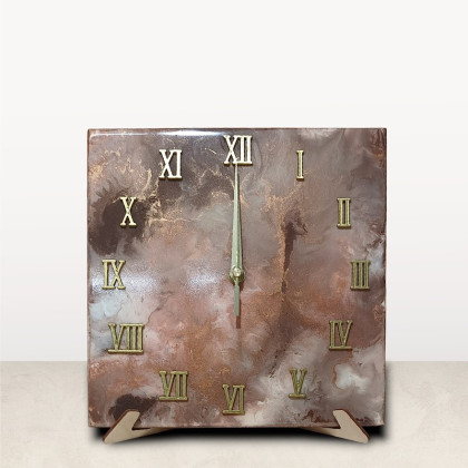 Zegar wykonany ręcznie z żywicy epoksydowej na sklejce, techniką pouringu.