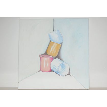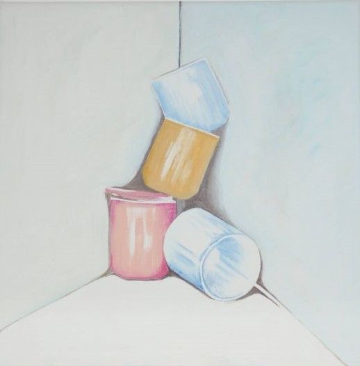 Martwa natura z kubeczkami wykonana farbami akrylowymi.
