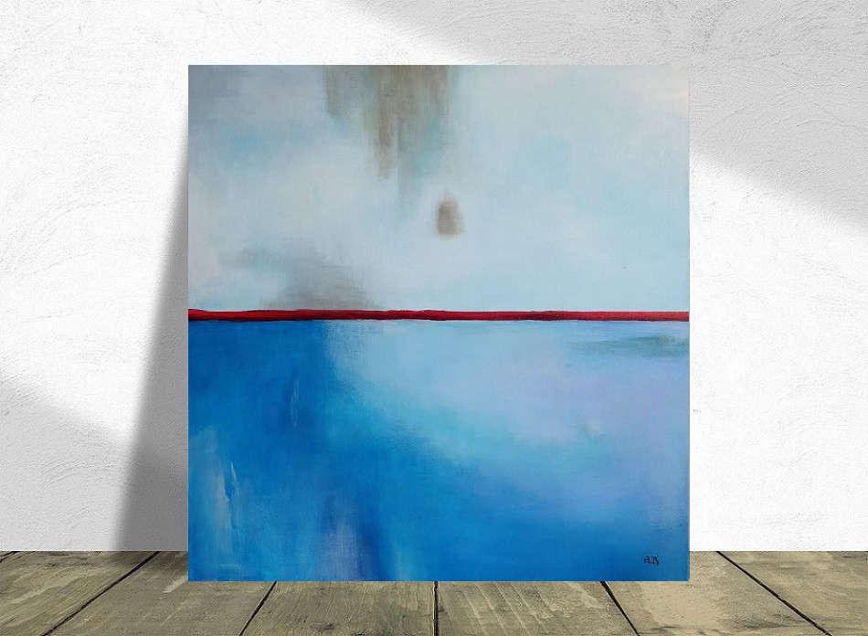 Praca Abstrakcja to obraz namalowany farbami akrylowymi na podobraziu o wielkości 70/70 cm.
