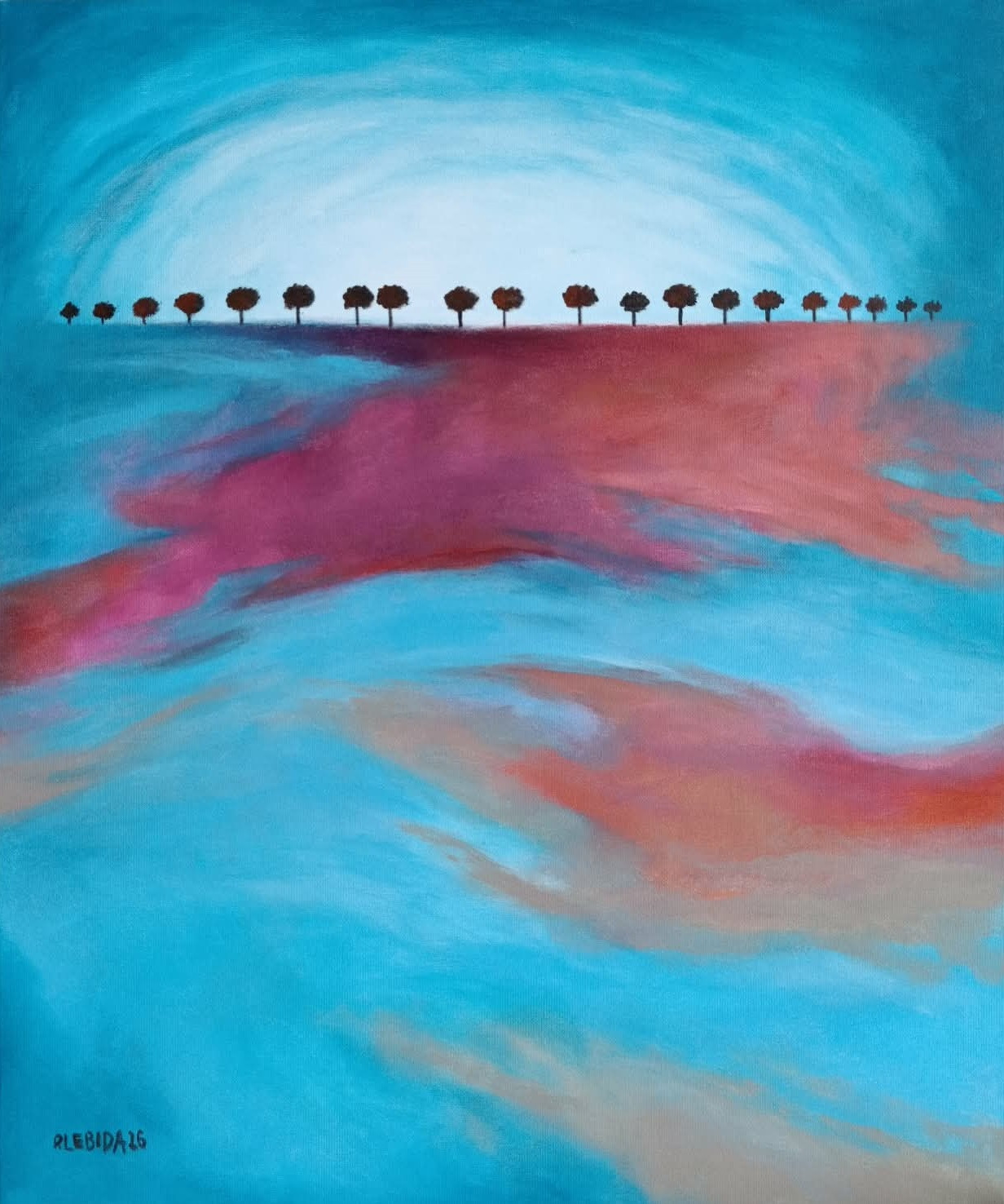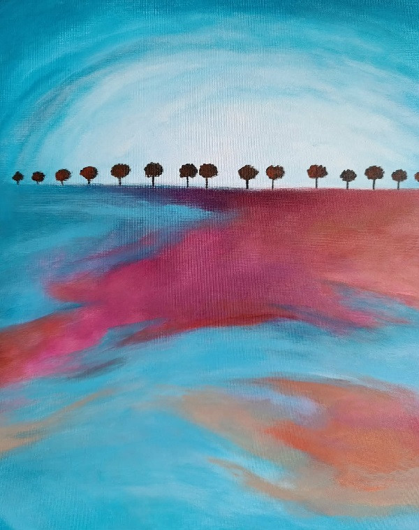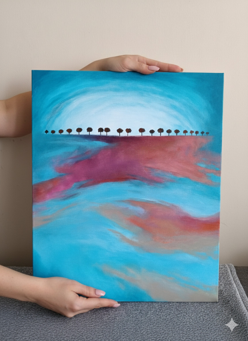 Drzewa to obraz namalowany farbami akrylowymi na podobraziu o wielkości 60/50 cm.