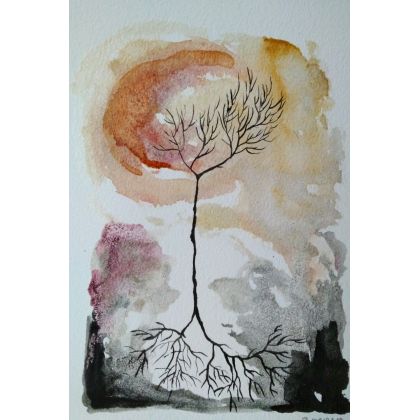 Praca wykonana farbą akwarelową na papierze akwarelowym 300g/m2, format a5. Przedstawiona w przykładowej ramie. Zapraszam :)