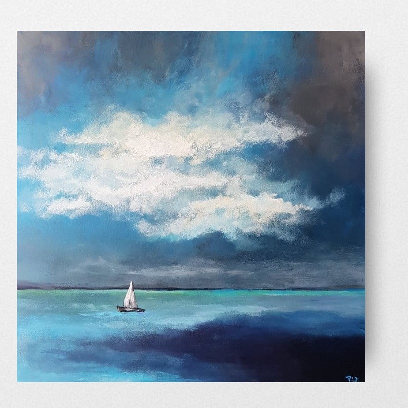 Boki zamalowane w kolorze tła, może więc wisieć bez ramy(obraz sprzedawany bez ramy)