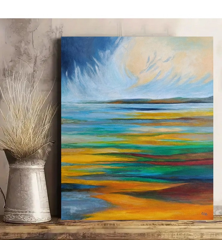 Boki zamalowane w kolorze tła, może więc wisieć bez ramy(obraz sprzedawany bez ramy)