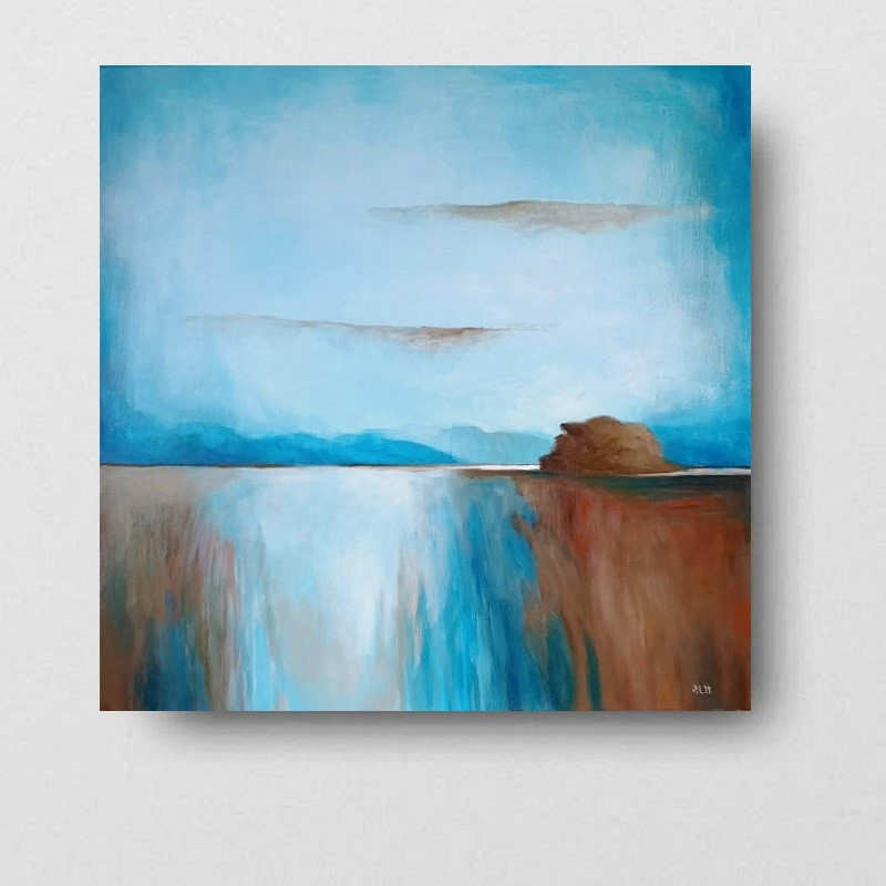 Praca Pejzaż to obraz namalowany farbami akrylowymi na podobraziu o wielkości 60/60 cm.
