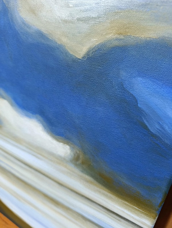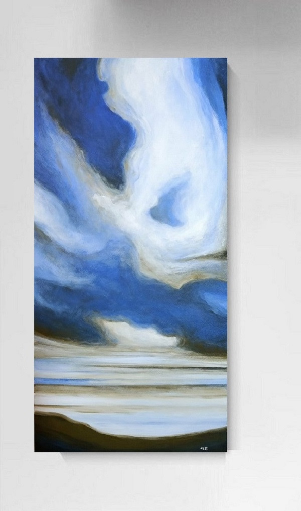 Pejzaż to obraz namalowany farbami akrylowymi na podobraziu o wielkości 80/40 cm.