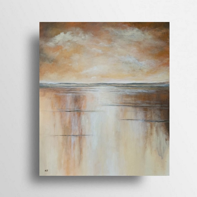 Pejzaż w brązach,złocie i pomarańczach - obraz akrylowy 70/60 cm