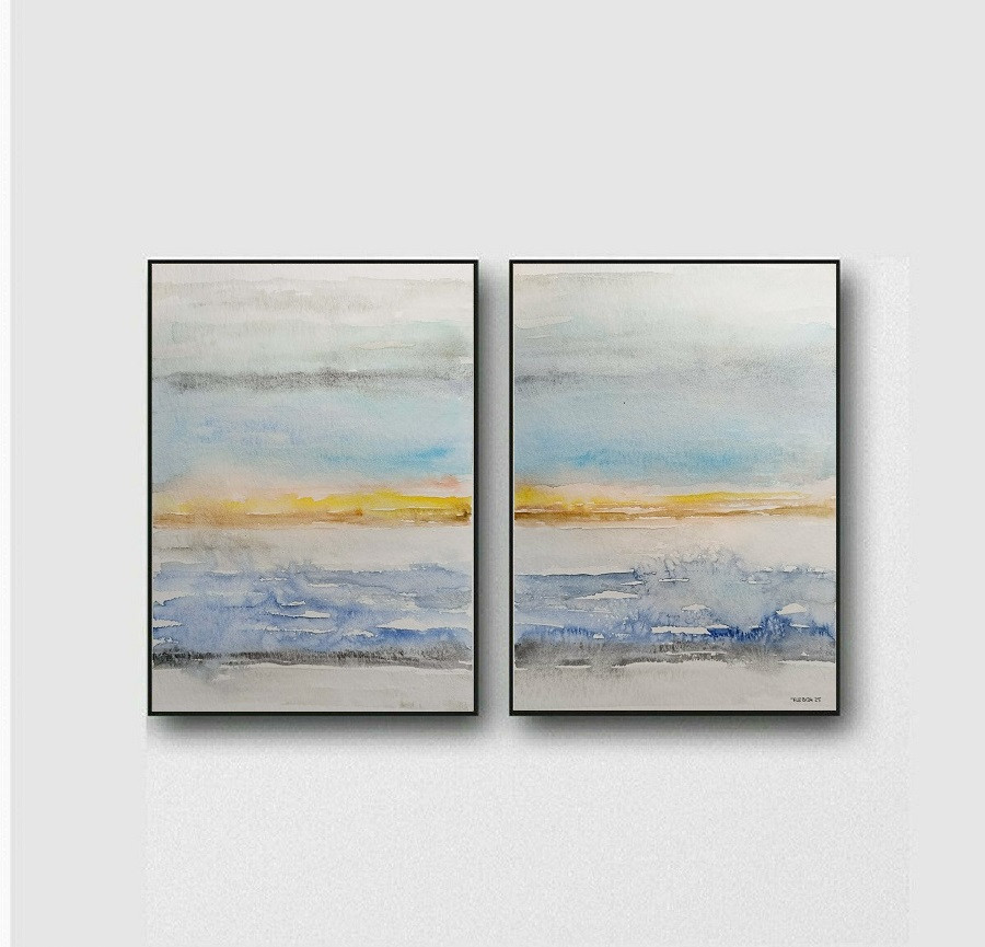 Dwie oryginalne akwarele, wykonane farbami akwarelowymi na grubym papierze akwarelowym 425 g/m2 . Prace są sygnowane. Sprzedawane jako komplet. Wymiary prac 32/24 cm x2. Kolory mogą się nieznacznie różnić od oryginału, sprzedawane bez oprawy, Zapraszam :)