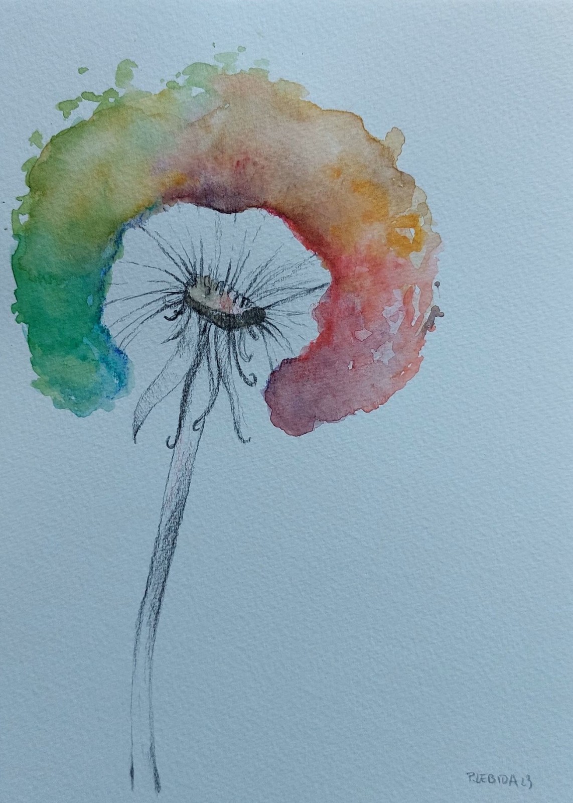 Oryginalna akwarela, wykonana profesjonalnymi farbami akwarelowymi Rembrandt i kredkami na papierze akwarelowym 300 g/m2 . Praca jest sygnowana. Wymiary pracy :18/25 cm. Kolory mogą się nieznacznie różnić od oryginału, co jest uzależnione od ustawień monitora.