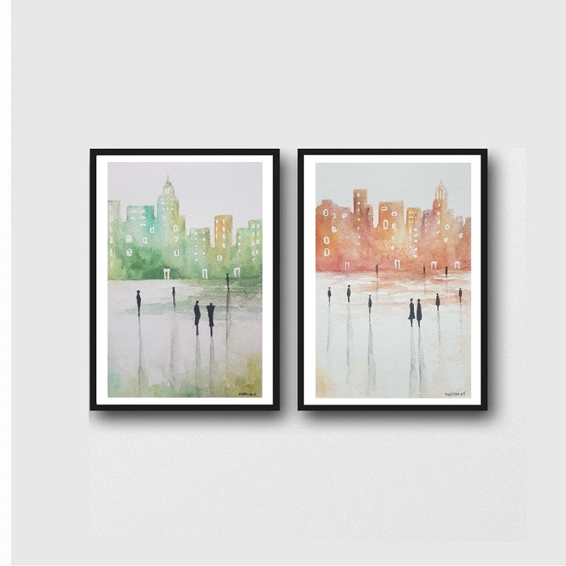 Prace wykonane farbą akwarelową na papierze akwarelowym 300g/m2, format każdej 18/12,5 cm. Przedstawione są w przykładowych ramach. Zapraszam :)