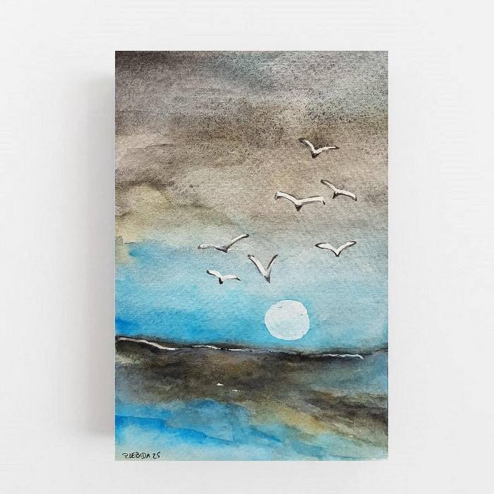 Oryginalna akwarela, wykonana profesjonalnymi farbami akwarelowymi Rembrandt na papierze akwarelowym 300 g/m2 . Praca jest sygnowana. Wymiary pracy :18/12,5 cm. Praca sprzedawana jest bez oprawy. Kolory mogą się nieznacznie różnić od oryginału, co jest uzależnione od ustawień monitora.