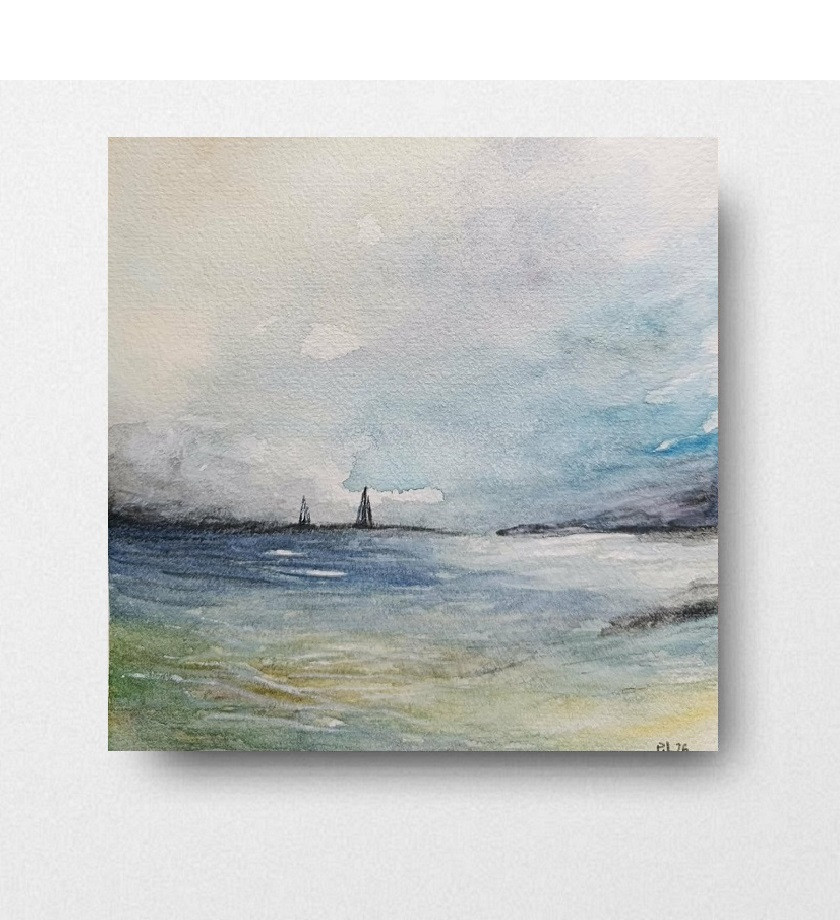 Na morzu- akwarela formatu 20/20 cm