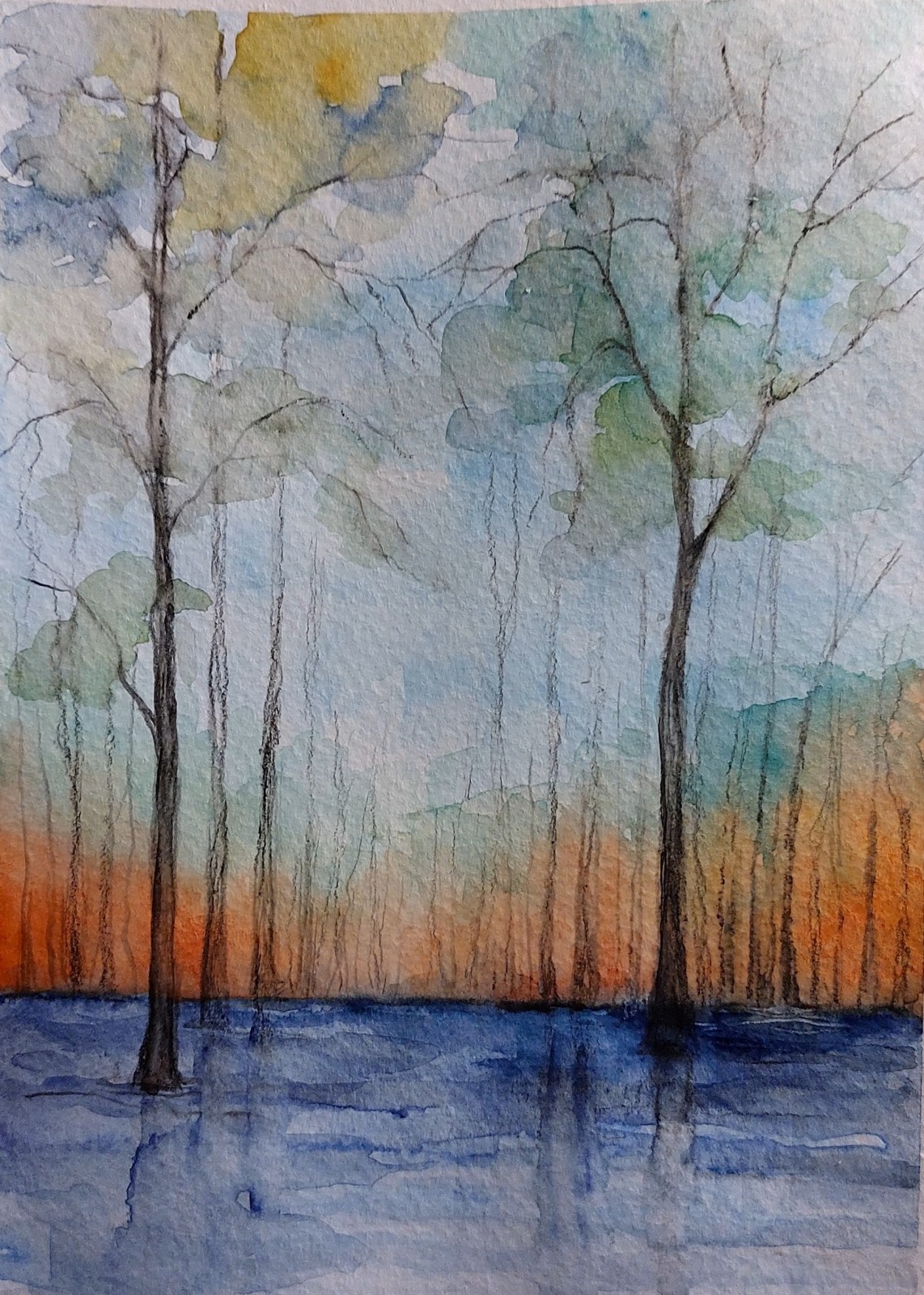 Pejzaż zimowy -obraz akwarela(proj.: Paulina Lebida)