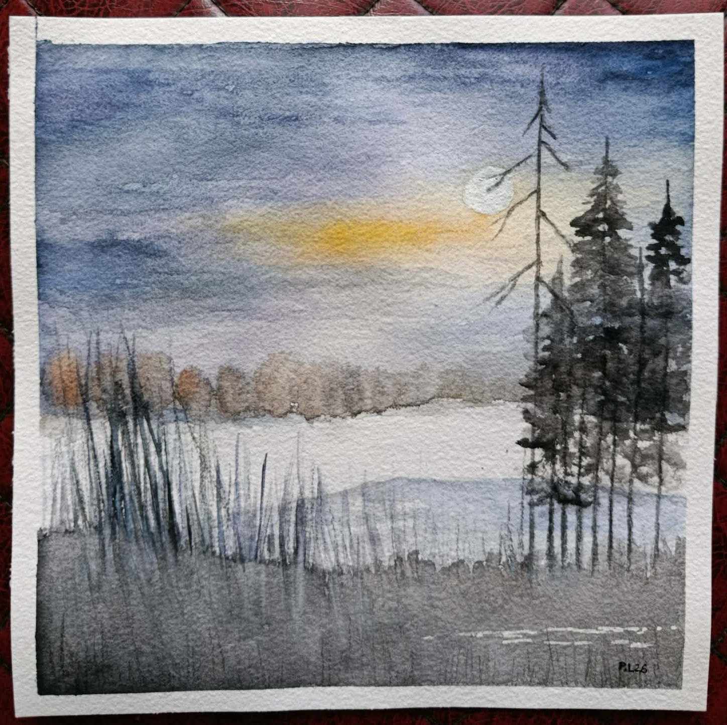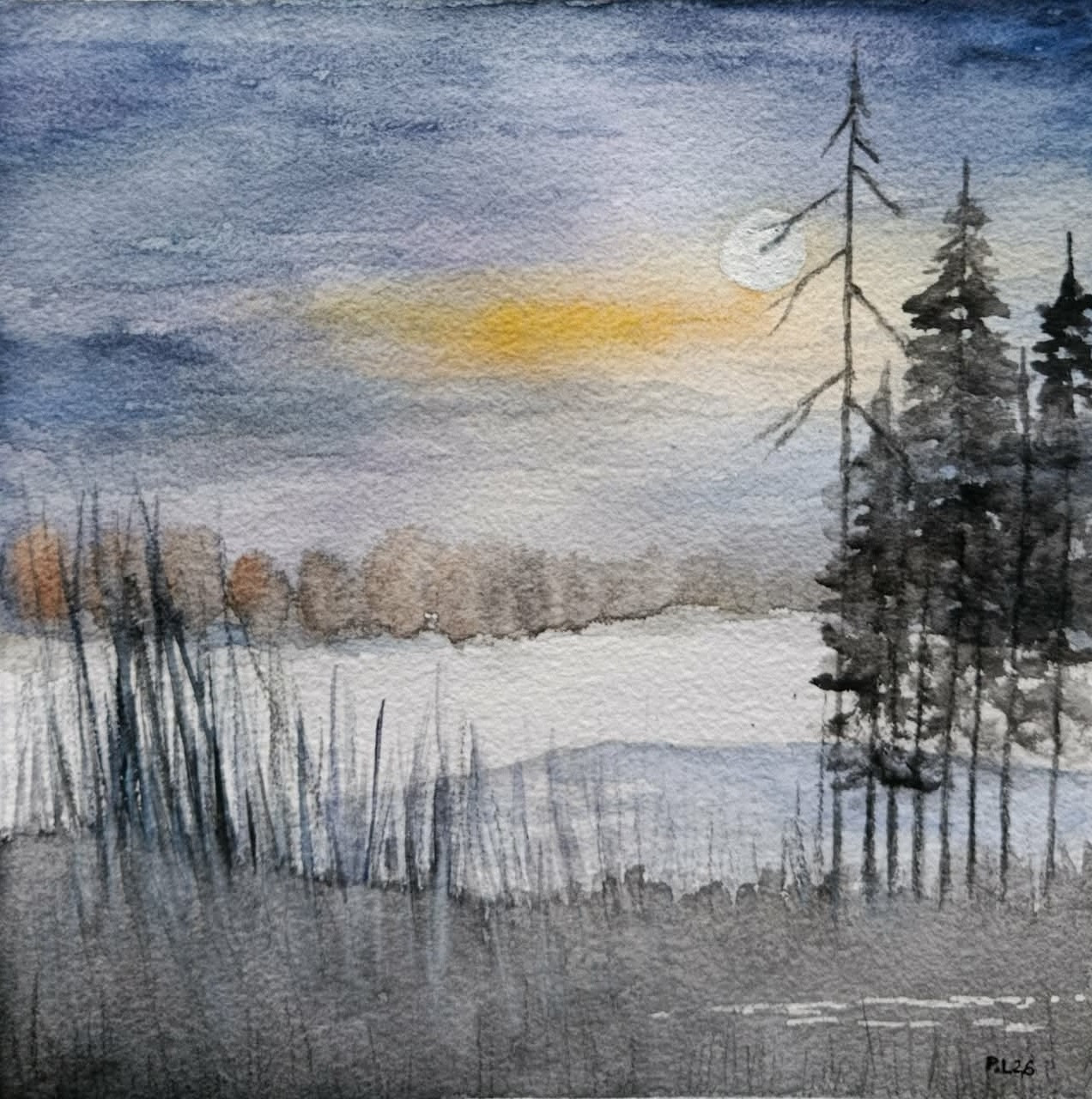 Pejzaż zimowy -obraz akwarela(proj.: Paulina Lebida)