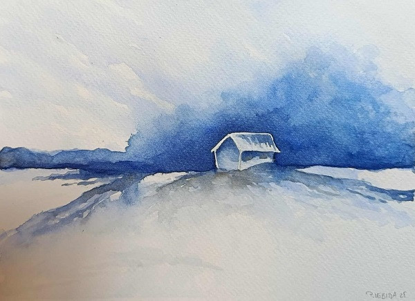 Pejzaż zimowy -obraz akwarela(proj.: Paulina Lebida)