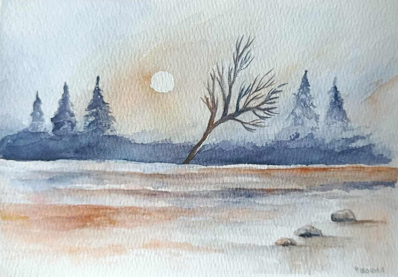 Pejzaż zimowy -obraz akwarela(proj.: Paulina Lebida)