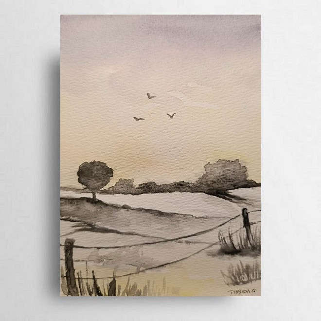 Oryginalna akwarela, wykonana profesjonalnymi farbami akwarelowymi Rembrandt na papierze akwarelowym 300 g/m2 . Praca jest sygnowana. Wymiary pracy :A5 . Praca sprzedawana jest bez oprawy. Kolory mogą się nieznacznie różnić od oryginału, co jest uzależnione od ustawień monitora.
