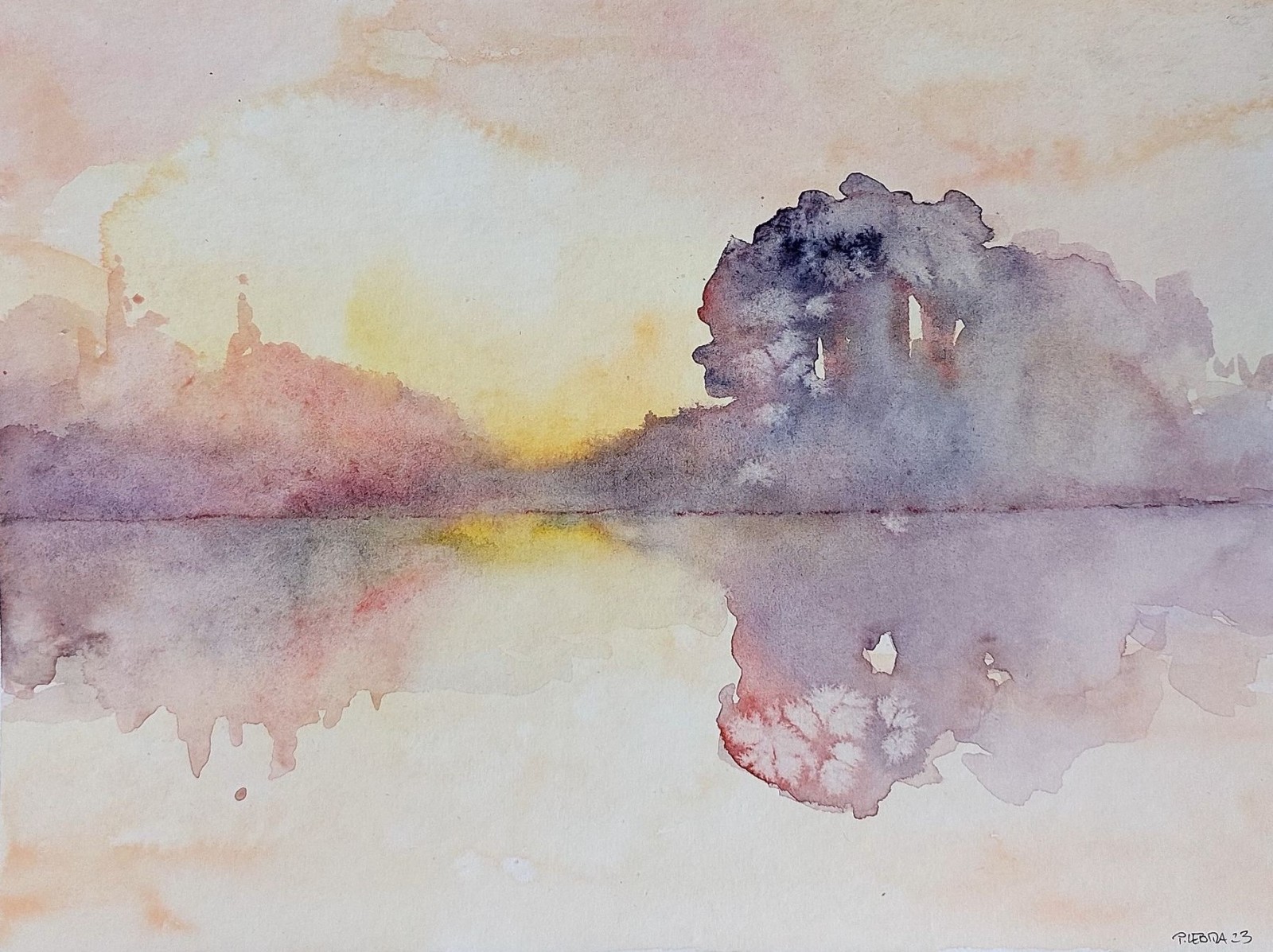 Pejzaż w fioletach -akwarela
