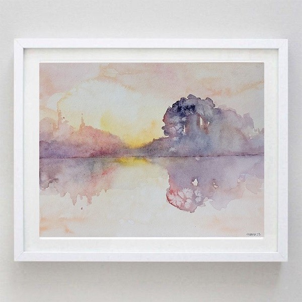 Praca wykonana farbą akwarelową na grubym papierze akwarelowym 425 g/m2, format 32/24 cm. Przedstawiona jest w przykładowej ramie. Zapraszam :)