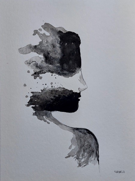 Praca wykonana farbą akwarelową i tuszem na grubym papierze 425 g/m2, format 24/32 cm . Zapraszam :)