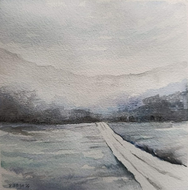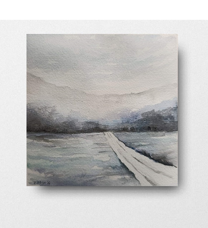 Zima - akwarela formatu 15/15 cm