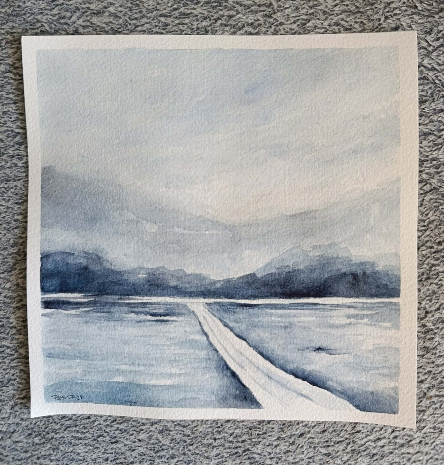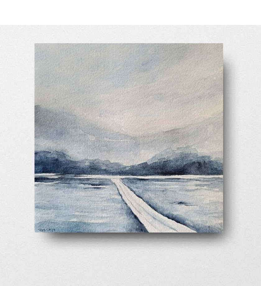 Zima- akwarela formatu 20/20 cm