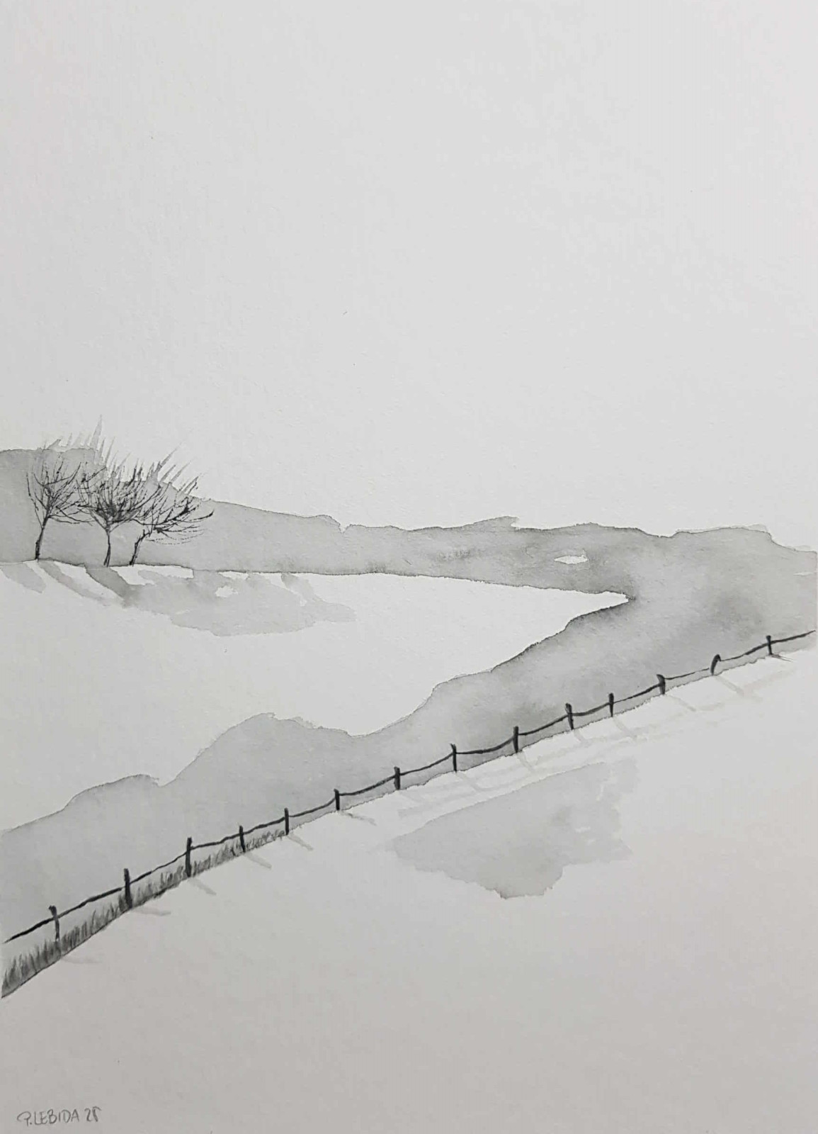 Pejzaż zimowy -obraz akwarela(proj.: Paulina Lebida)