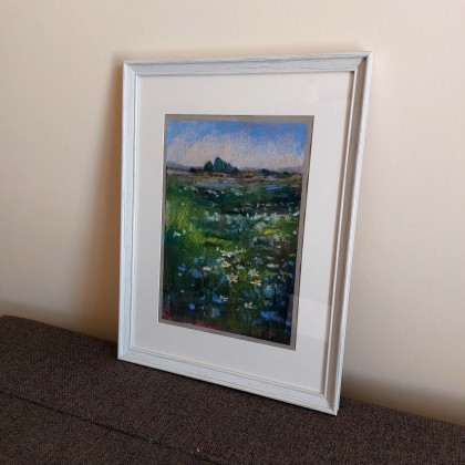 Praca wykonana pastelami suchymi na papierze Ingres do pasteli 200 g/m2, format rysunku A4. Praca sprzedawana w prezentowanej ramie 42/32 cm, wymiar passe-partout 4,5 cm. Wszystkie prace zabezpieczone są fiksatywą. Zapraszam :)