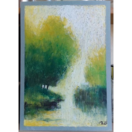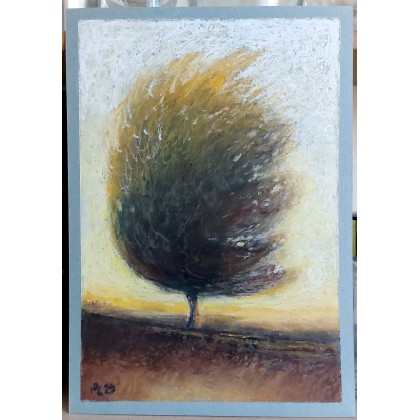 Drzewa-dwa pejzaże wykonane pastelami olejnymi