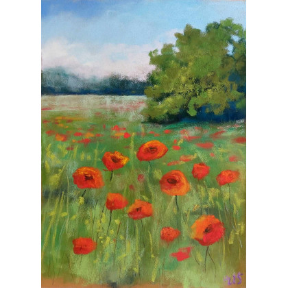 Makowa łąka - rysunek pastelami