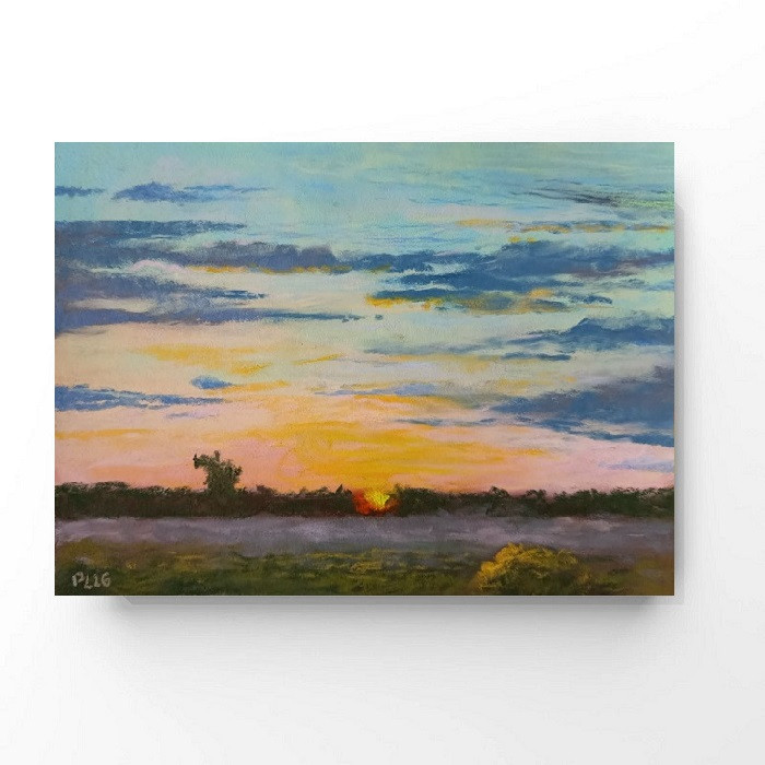 Praca wykonana pastelami suchymi na papierze przeznaczonym do pasteli pastelmat 360 g/m2, format 18/24 cm. Rysuję kredkami Sennelier/Rembrandt. Rysunek zabezpieczony fiksatywą. Pracę sprzedaję bez ramy. Zapraszam :)