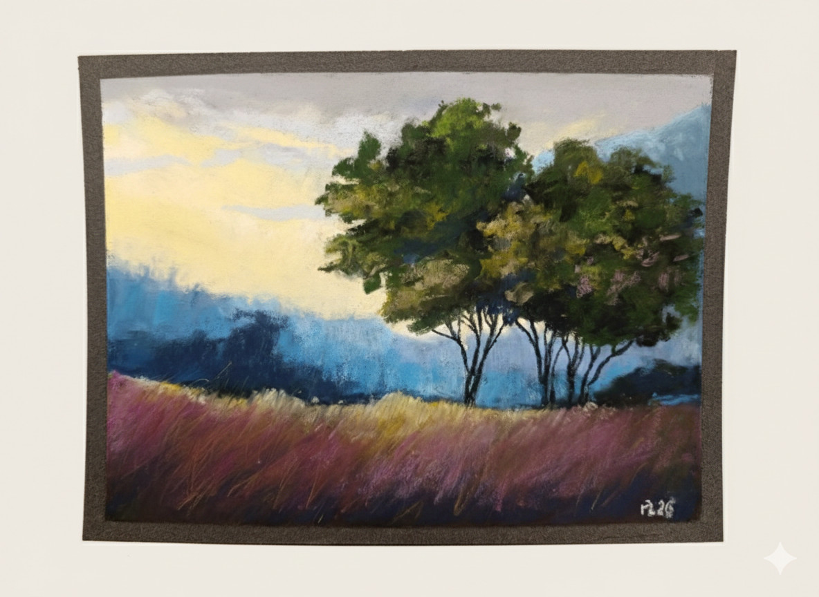 Praca wykonana pastelami suchymi na papierze przeznaczonym do pasteli pastelmat 360 g/m2, format 18/24 cm. Rysuję kredkami Sennelier/Rembrandt. Rysunek zabezpieczony fiksatywą.Pracę sprzedaję bez ramy. Zapraszam :)