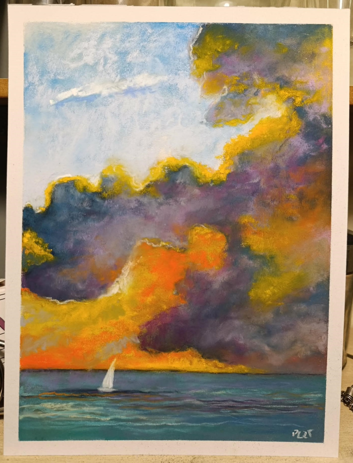 Praca wykonana pastelami suchymi na papierze przeznaczonym do pasteli pastelmat 360 g/m2, format 24/18 cm. Rysuję kredkami Sennelier/Rembrandt. Rysunek zabezpieczony fiksatywą. Zapraszam :)