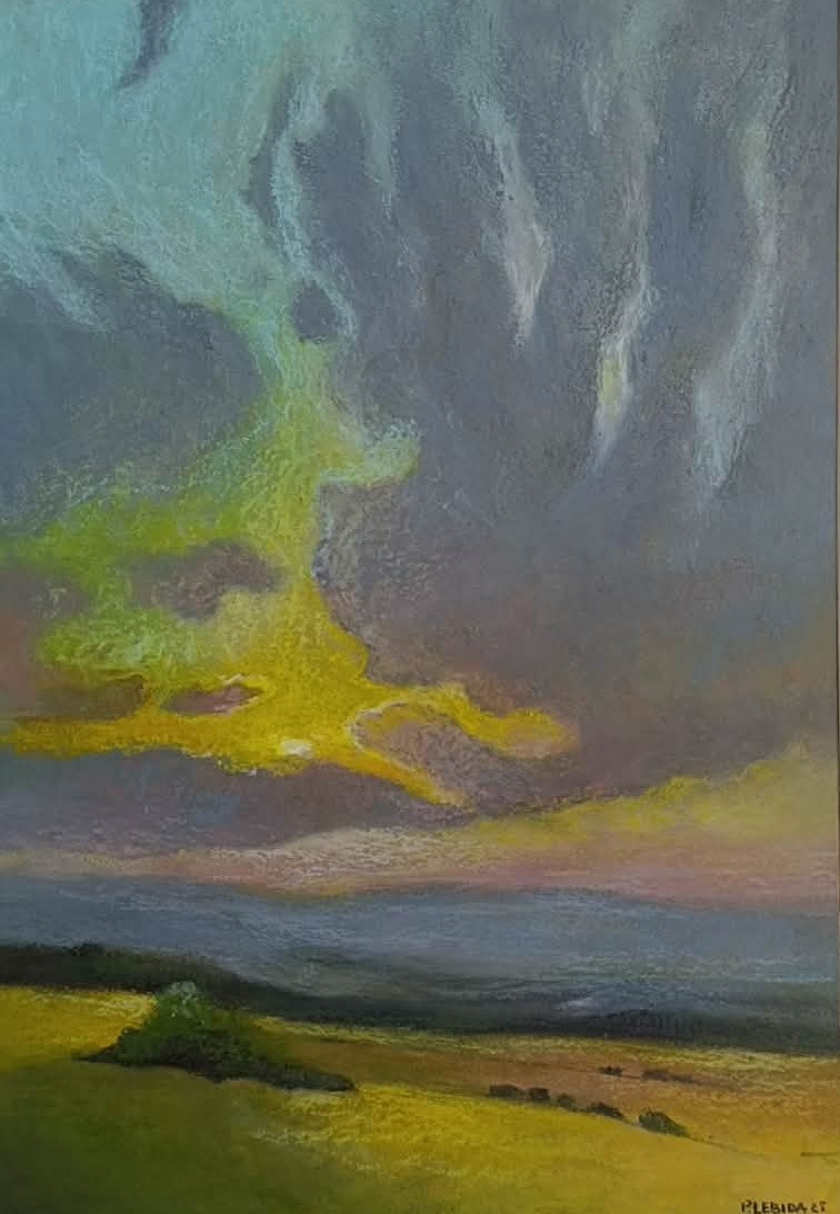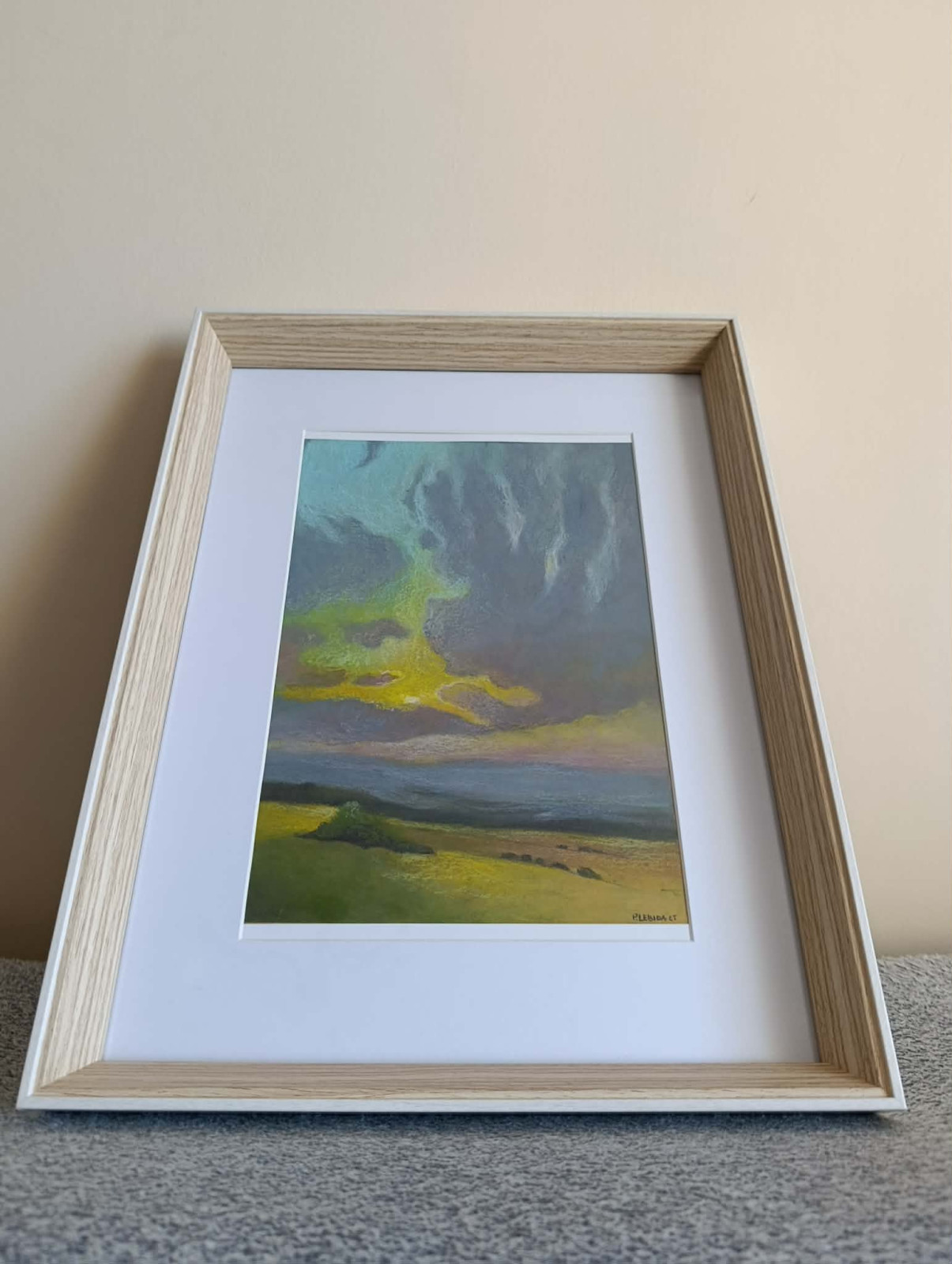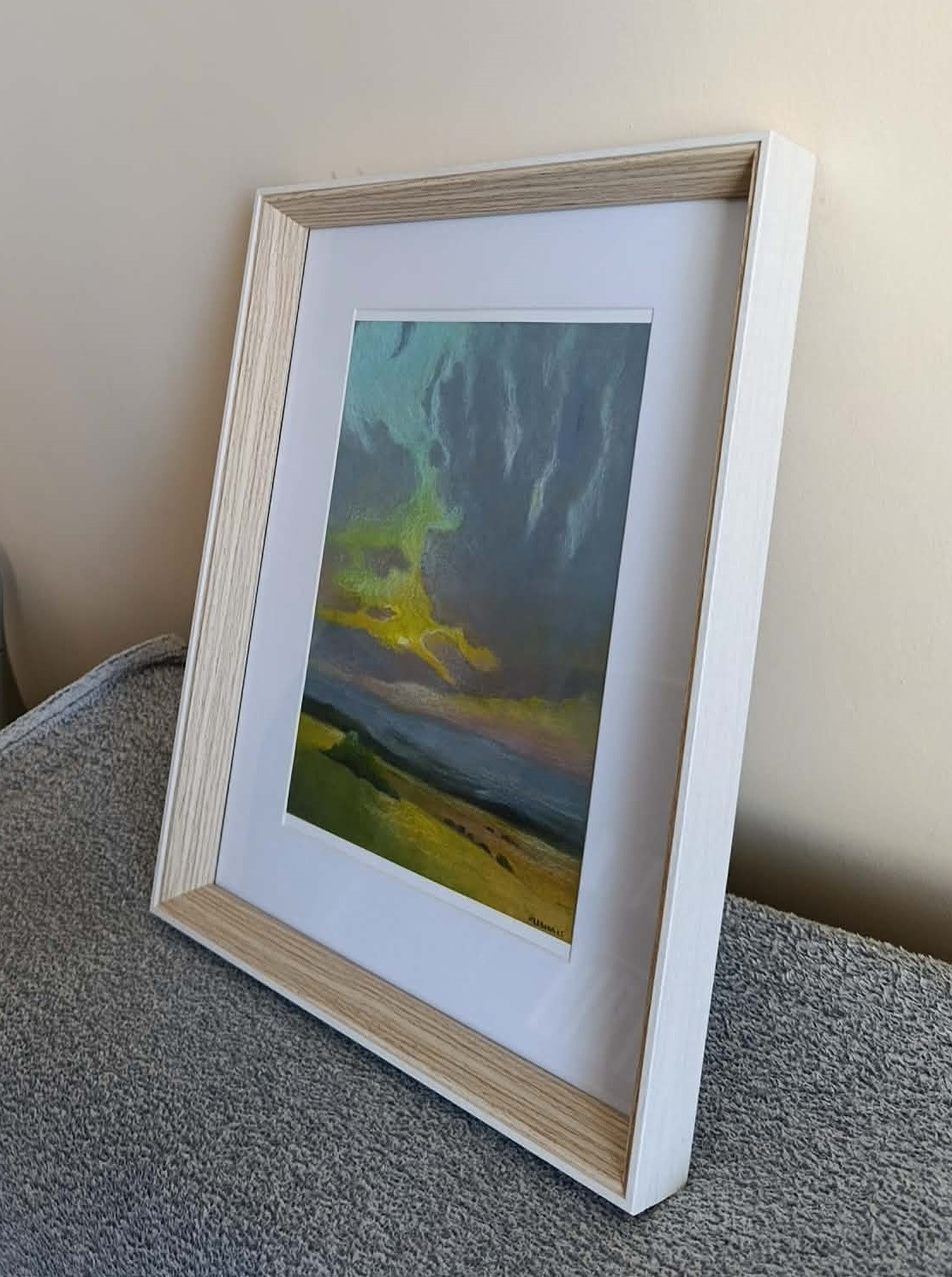 Pejzaż -rysunek pastelami olejnymi w ramie