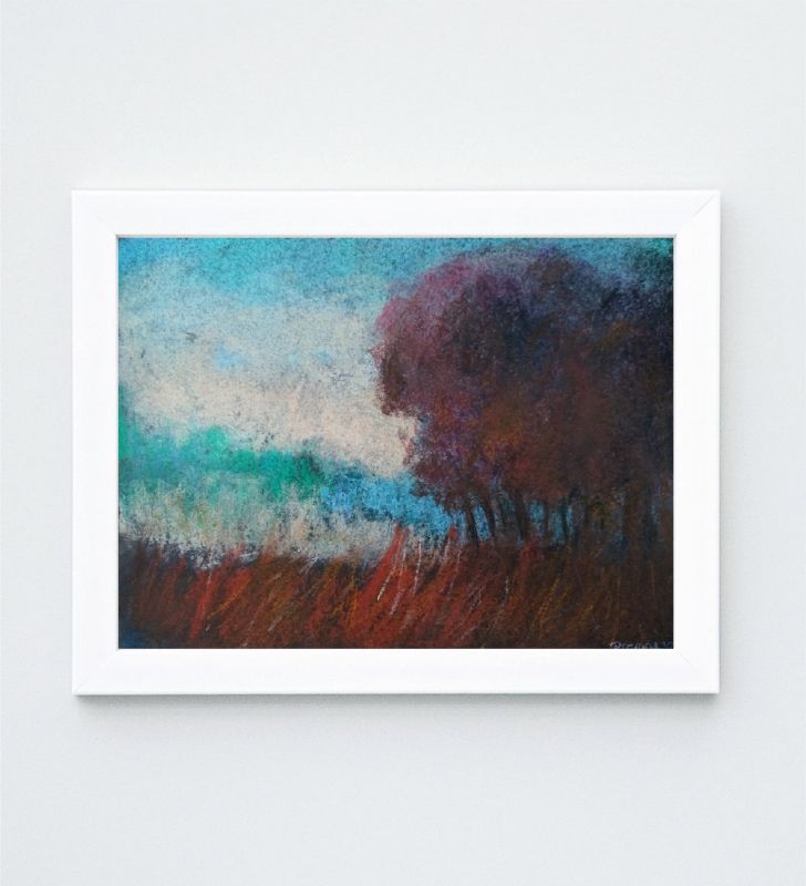 Praca wykonana pastelami suchymi na czarnym papierze 250g/m2, format A5. Przedstawiona w przykładowej ramie. Zapraszam :)