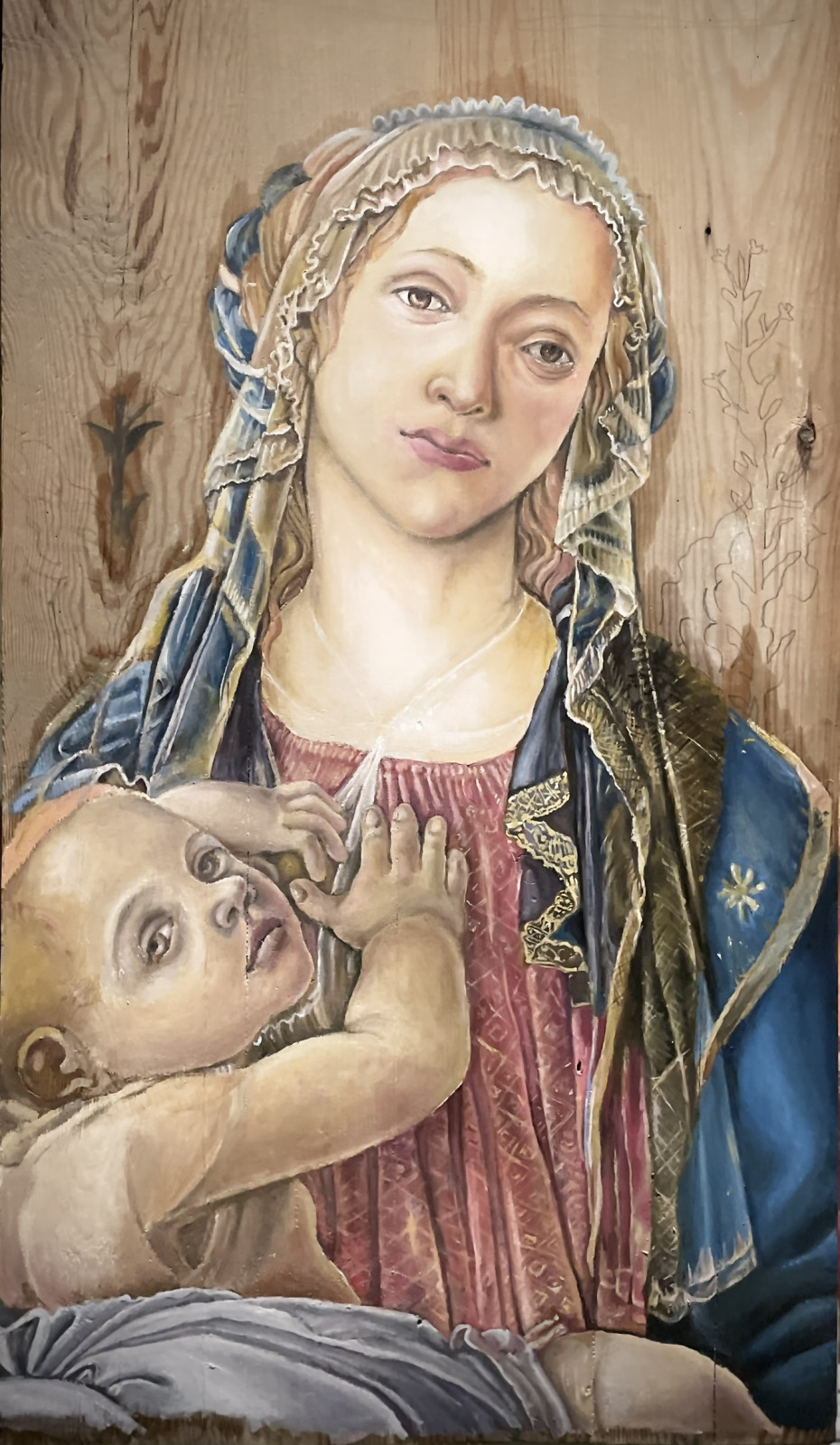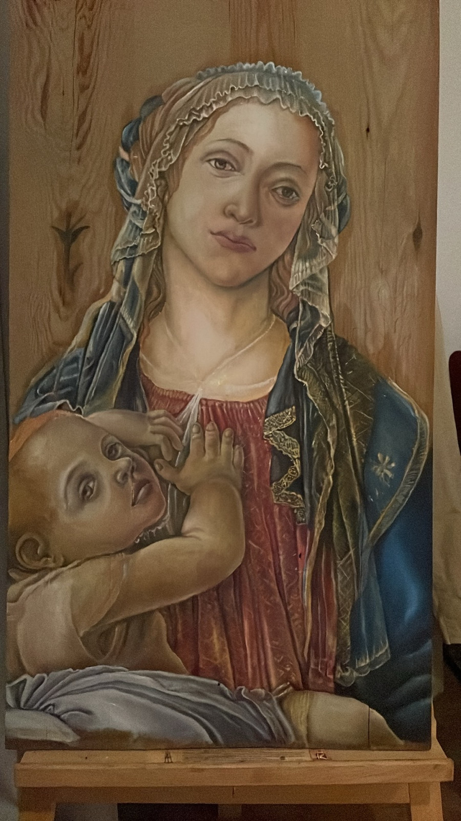 Obraz olejny na desce 90x50cm. kopia fragment obrazu Botticellego.
