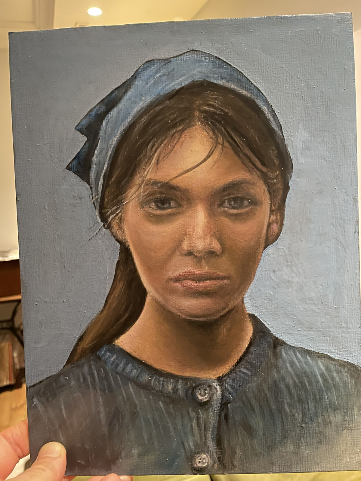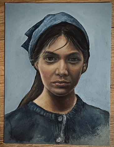 Portret kobiety, format A4. Olej na kartonie/