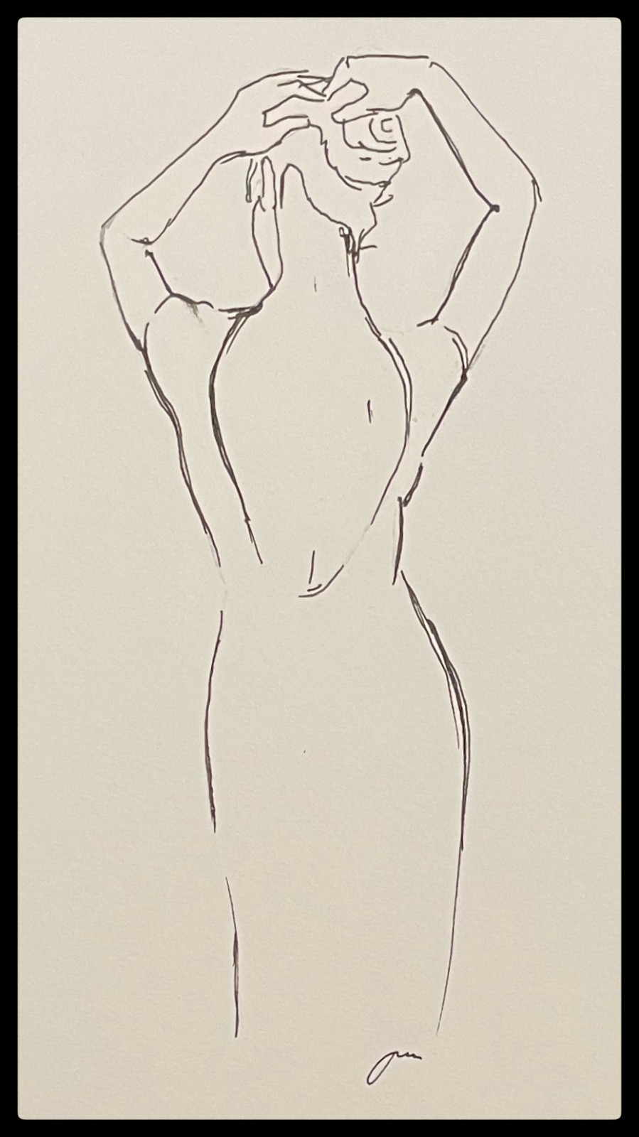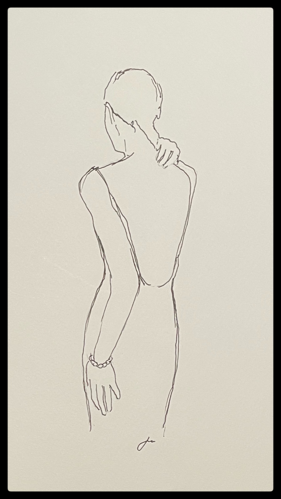 Trzy rysunki postaci kobiety na białym kartonie. Rysunek tuszem. Wymiary około A4
