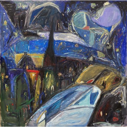 Obraz wykonany został w technice Olej na płycie, wymiary 100x100 cm