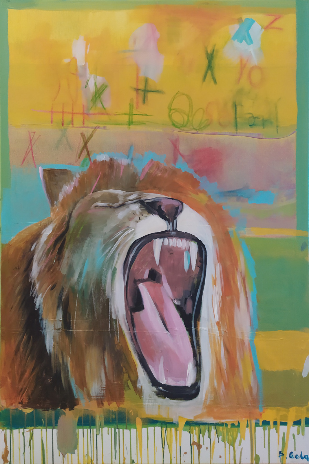 Wym 120x80cm... akryl na płótnie plus na fragmentach pastele suche utrwalone... sygnowany i werniksowany... certyfikat autentyczności....rok powstania 2022... Ma zamalowane boki więc nadaje się do powieszenia na ścianie bez ramy...