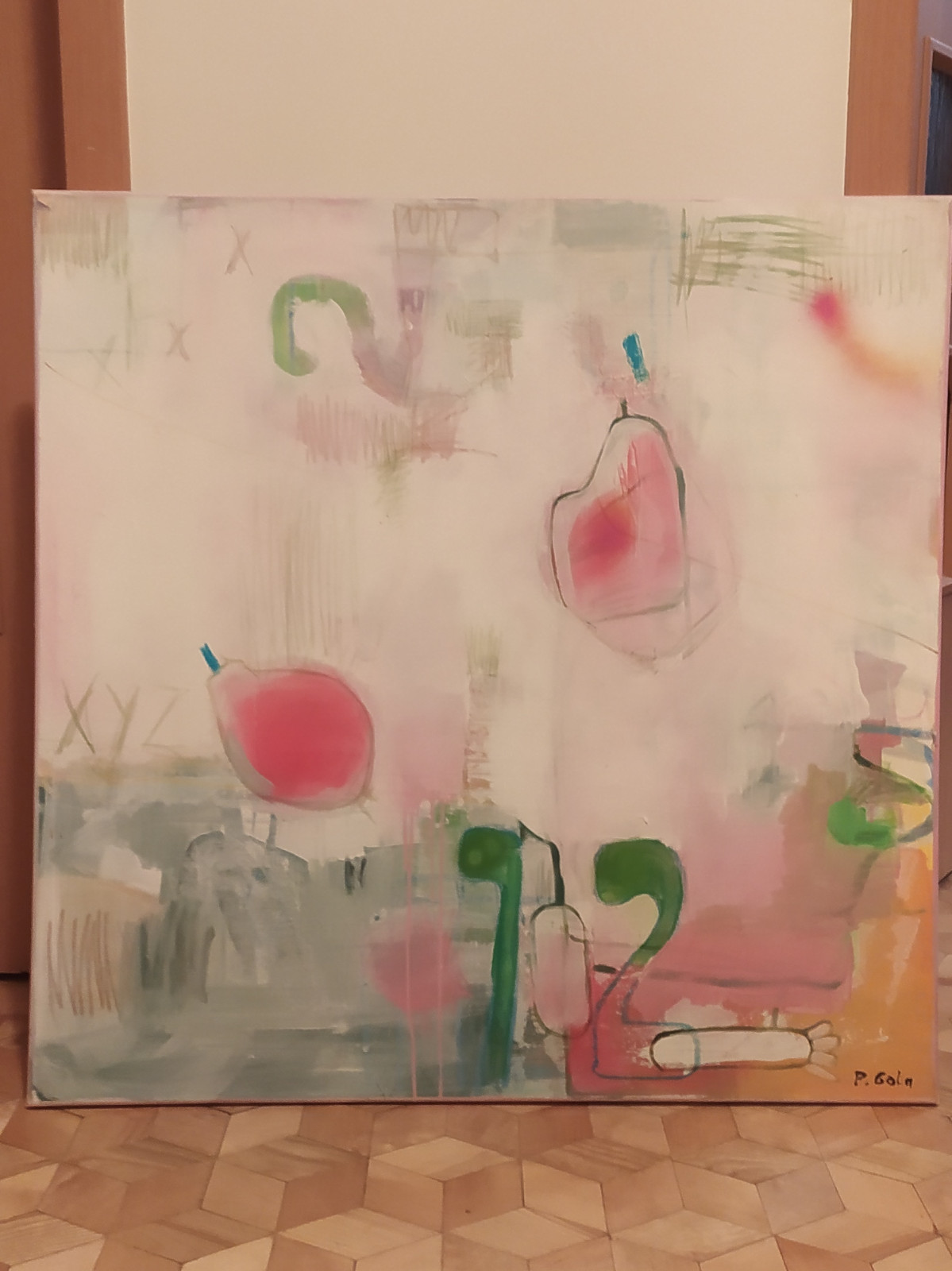 wym 90x90cm .... obraz akrylowy + kredki i farby w sprayu ... Obraz sygnowany w prawym dolnym rogu i na odwrociu - P.Gola.... Obraz najlepiej wpisze się dużej i średniej wielkości pomieszczenia jak salon czy sypialnia ... Ma zamalowane boki więc nadaje się do powieszenia na ścianie bez ramy ...Może być miłym prezentem dla kogoś bliskiego ...werniksowany ....Rok powstania 2021... Do obrazu dołączony certyfikat autentyczności