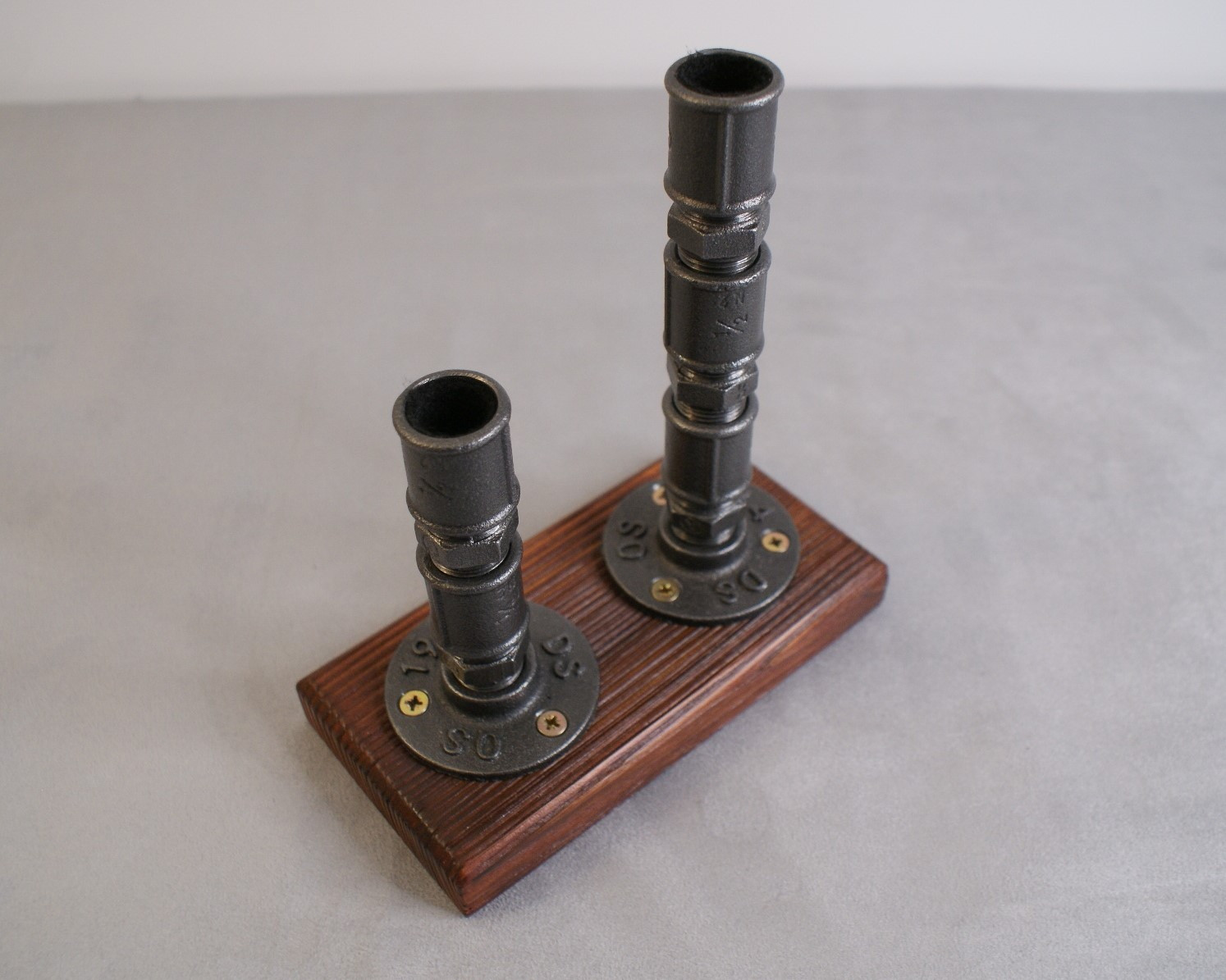 Przedstawiamy ręcznie wykonany świecznik w połączeniu dwóch stylów: industrialnego z uwagi na wykorzystanie stalowych rur hydraulicznych oraz stylu loftowego dzięki ciepłu jakie daje nam postarzałe lakierowane drewno.